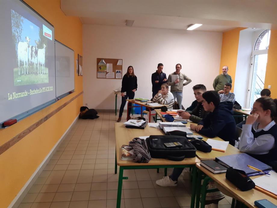 Dès janvier, l’association mayennaise a missionné 3 éleveurs pour aller à la rencontre des BTS ACSE de Rochefeuille : L’objectif ? Présenter trois systèmes différents en race Normande.